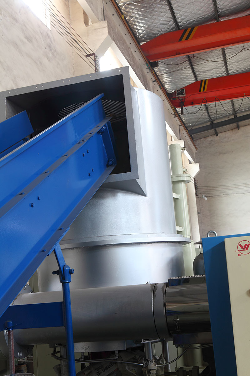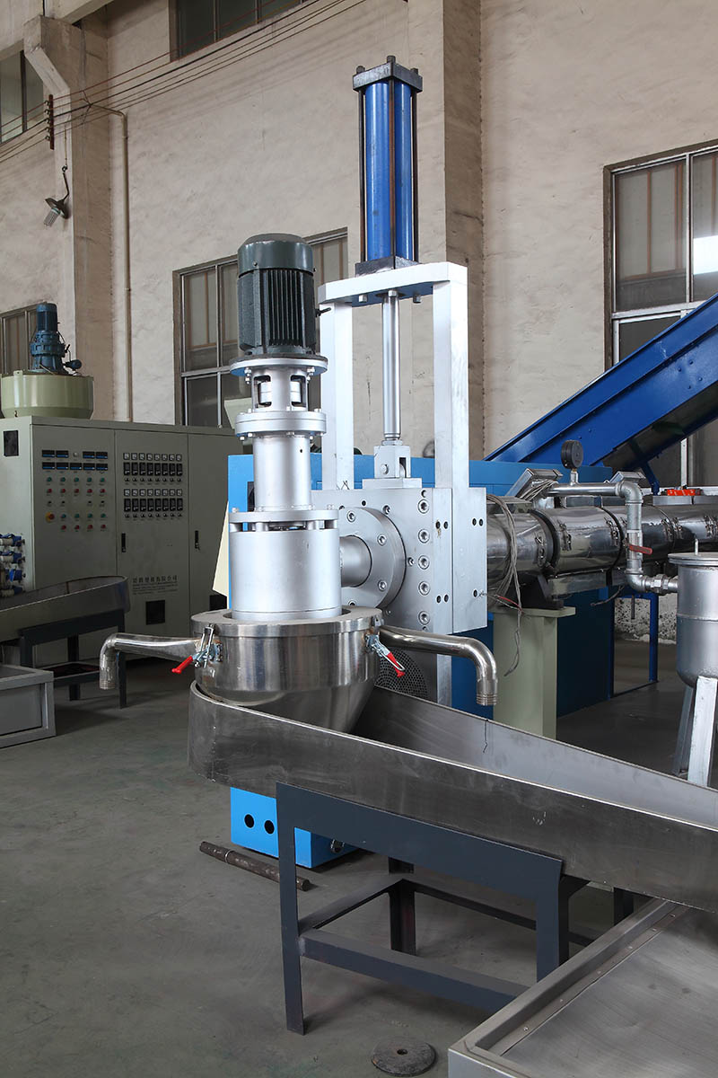 輸送帶、壓實倉、單螺桿擠出機、液壓模頭換網(wǎng)裝置、冷卻水槽、切粒機、風送料倉、控制電箱等組成。